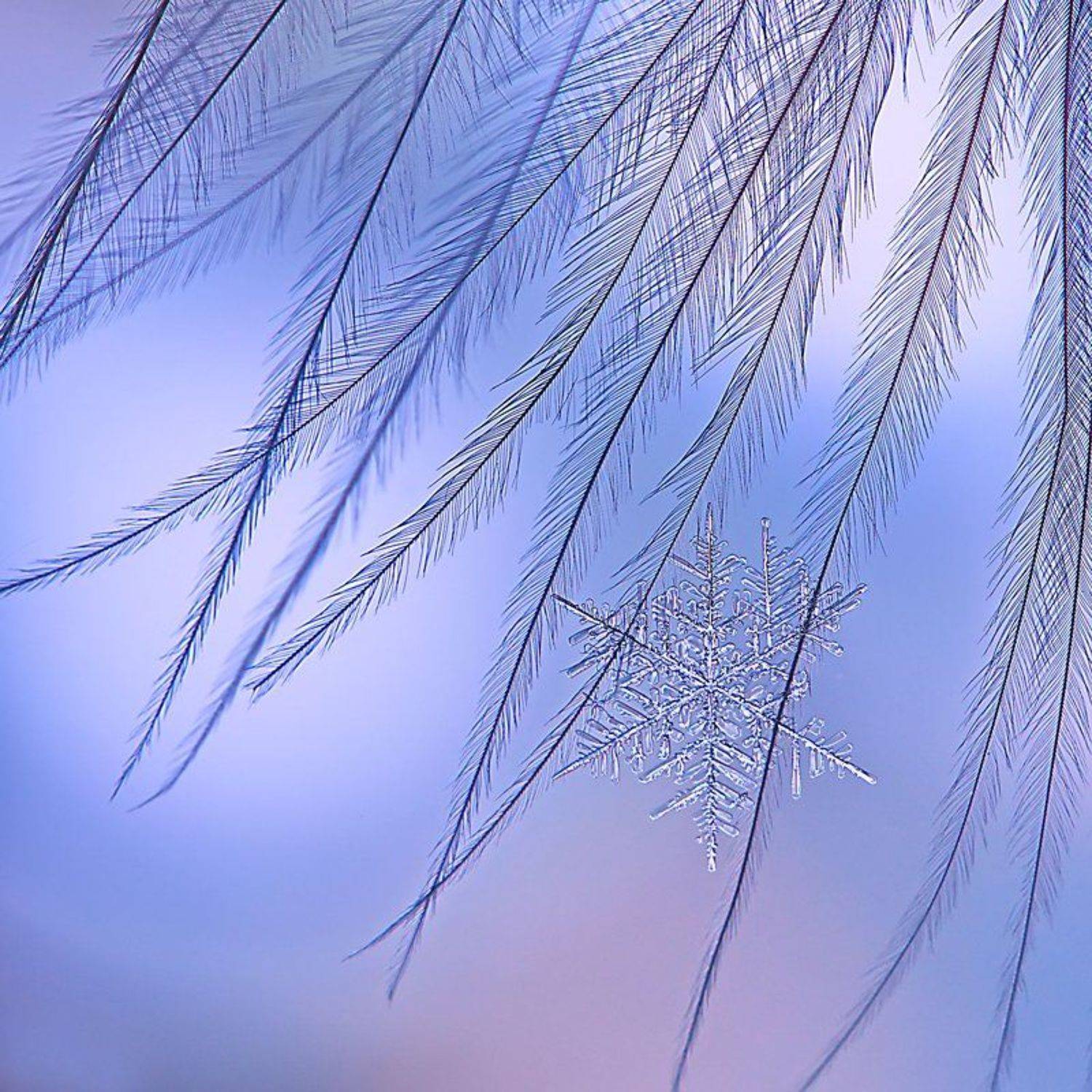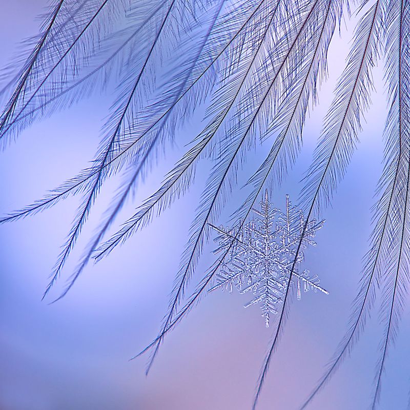 Снежинки сняты на стекле, пере или на растениях. Температурный режим: от -5 до -20. Значение диафрагмы от 4,0 до 8,0. Свет: вспышка, светодиодный фонарик или просто солнечные лучи.