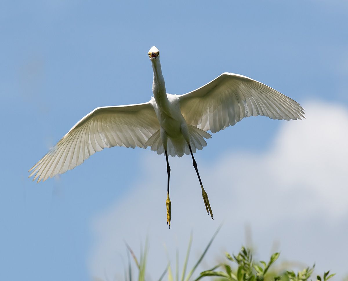 Флорида. Американская белая цапля (Snowy Egret) - около 61 см длиной, питаются мелкими рыбами, ракообразными, насекомыми и рептилями.