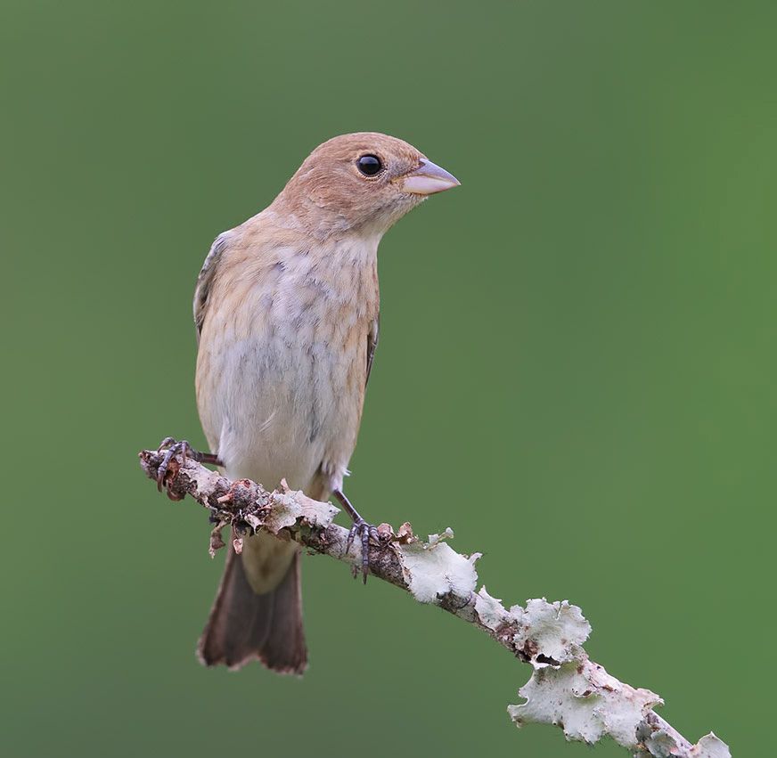 Индиговый овсянковый кардинал длиной 15 см, самец и самка имеют разное оперение.