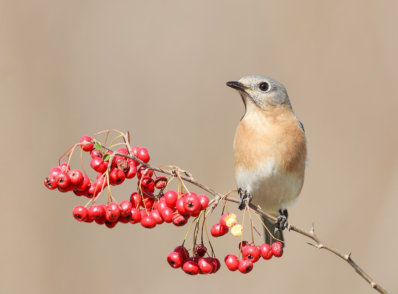 Восточная сиалия - (Eastern Bluebird) - длиной 18 см. Оперение верхней части тела ярко-синее, горло, грудь и бока каштаново-коричневые, брюхо и низ окрашены в белый цвет.