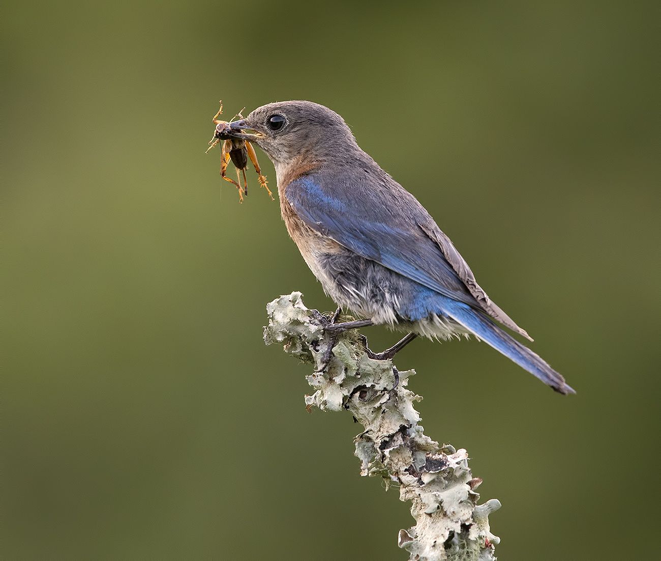 Птица питается насекомыми, пауками и ягодами. Эти птицы на юге делают до трёх выводков.