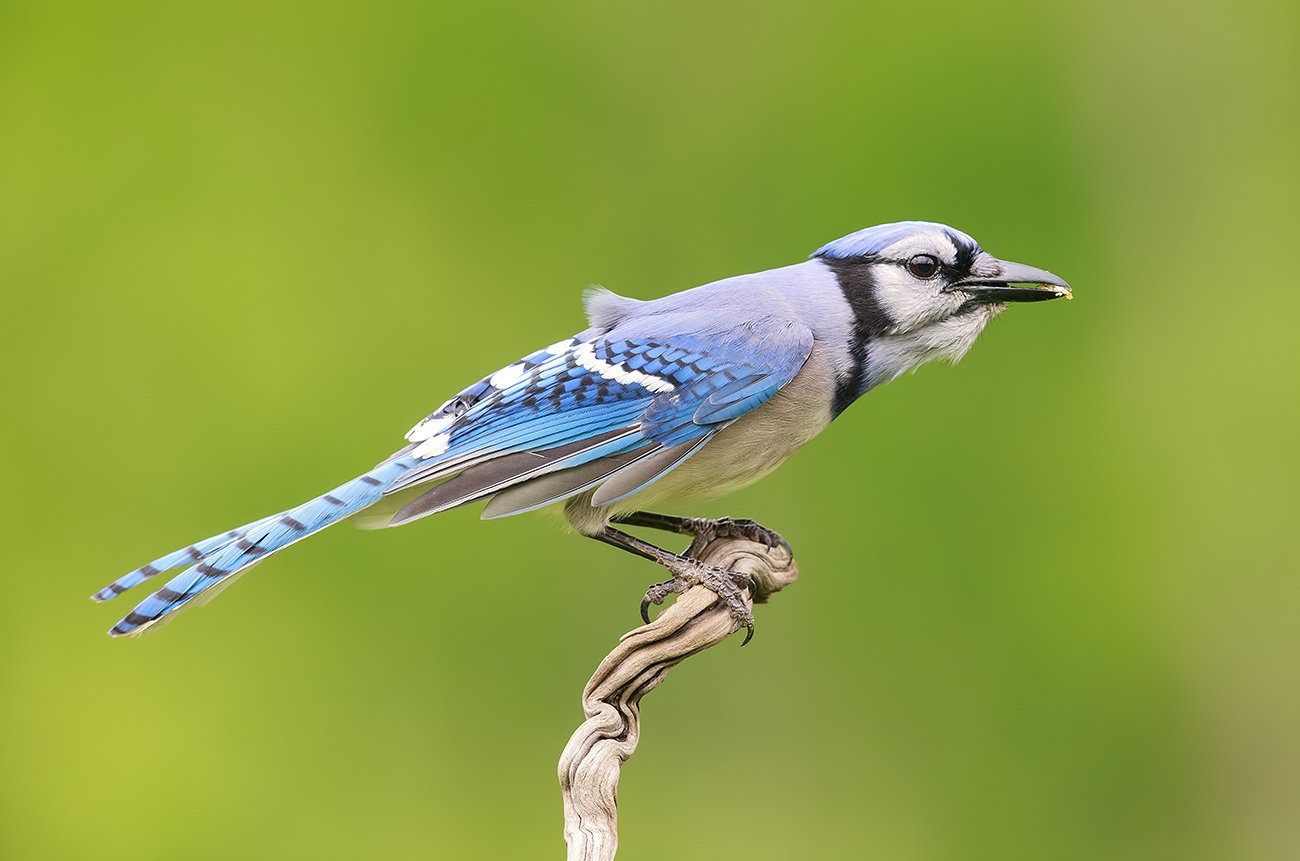 Размер голубой сойки составляет около 30 см, а размах крыльев насчитывает около 42 см.