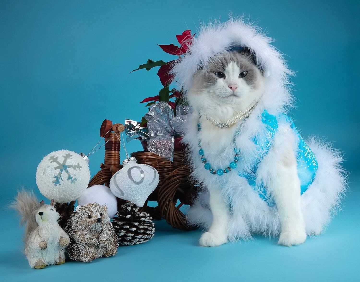Вот продолжаю работать c нашими котиками к Новому Году и для нашей Красотке решила даже смастерить ей наряды.