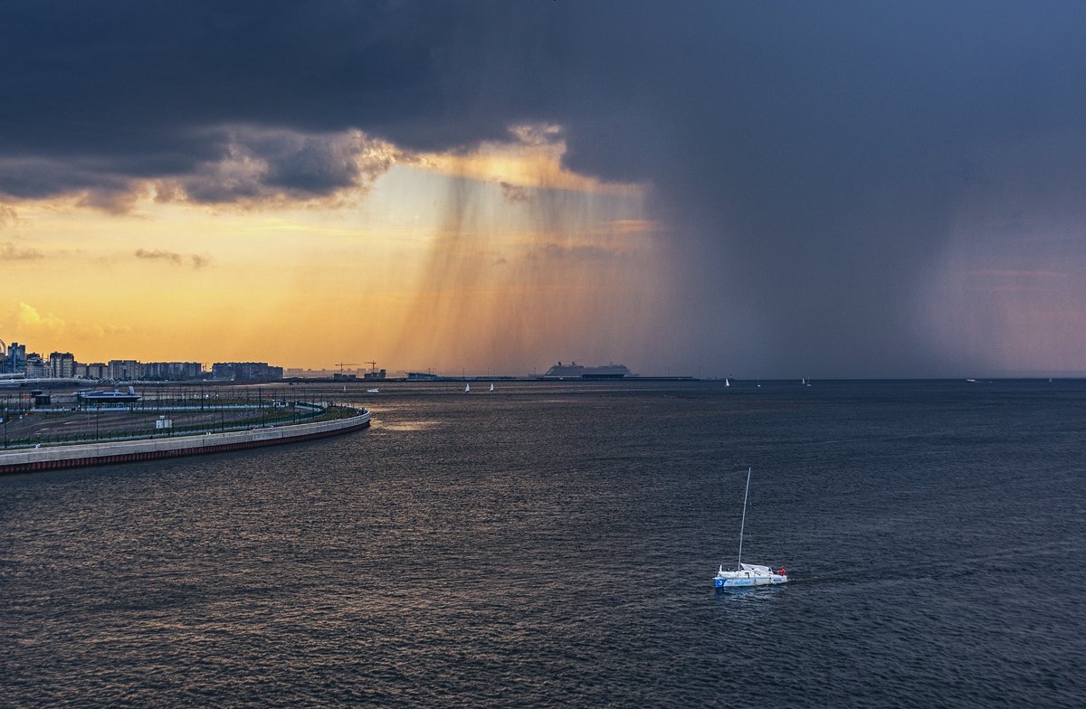 вода залив гроза дождь яхта корабли небо тучи, Вавилова Елизавета