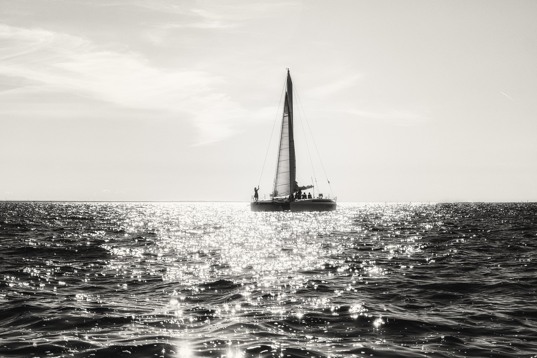 вода, катамаран, лето, чернобелое, девушка, прогулки, залив, Вавилова Елизавета