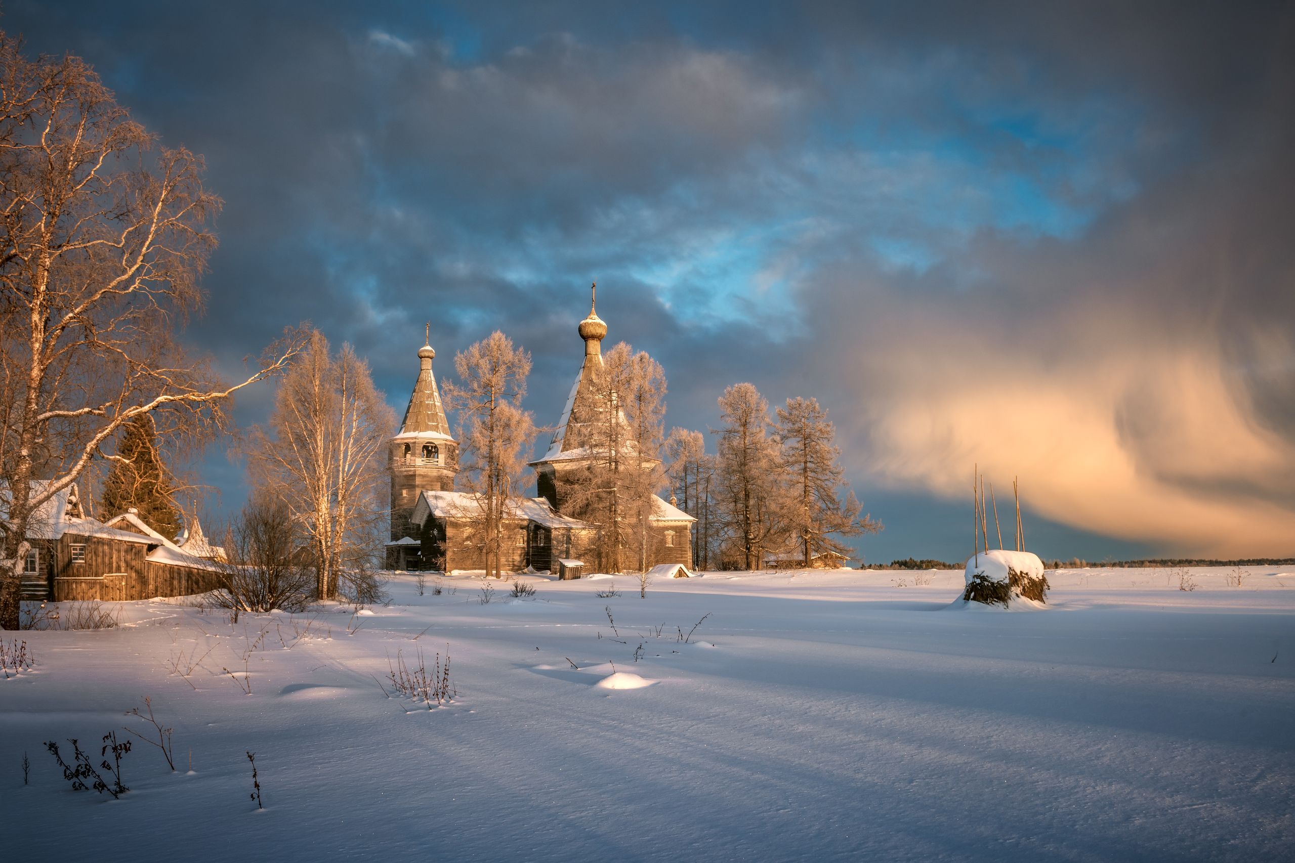 На фото Ошевенский Погост, мороз и снежные тучки....