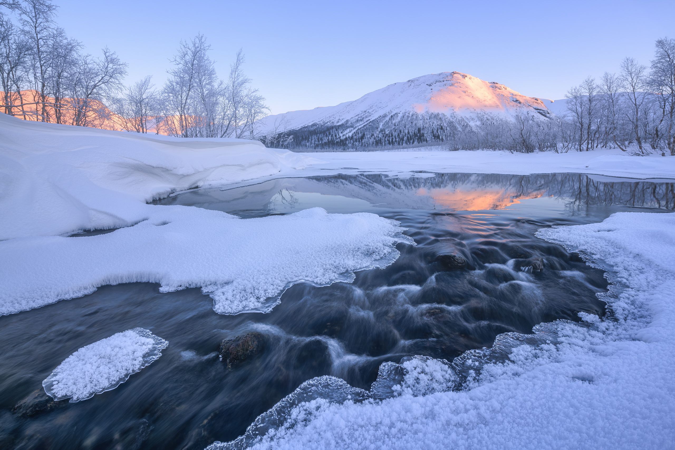 Течение в льду выглядит живым, даже зимой.