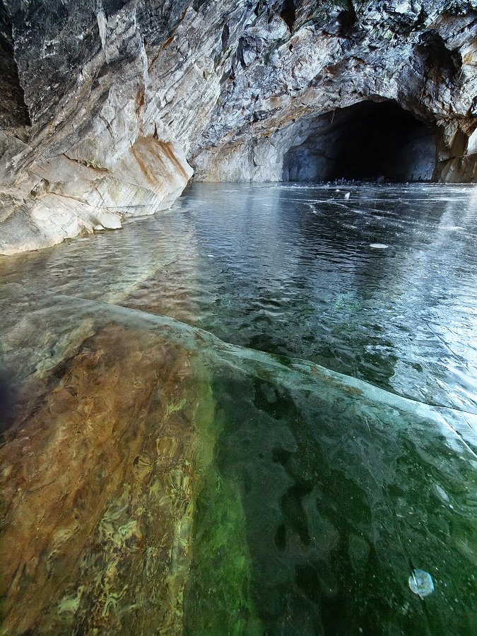 Никогда такого прозрачного льда не видела, а толщина какая? Очень необычно.