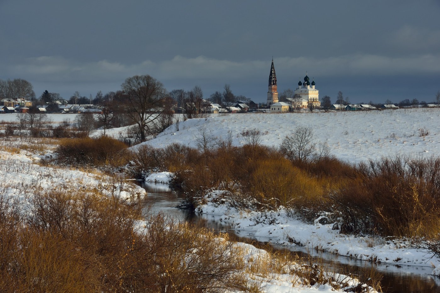 Забавное местечко...снимаю, стоя на ярославской земле, прямо за речкой поле Ивановской губернии, а церковь в Осенево - опять Ярославская область...такие вот у нас забавные вещи встречаются:)))