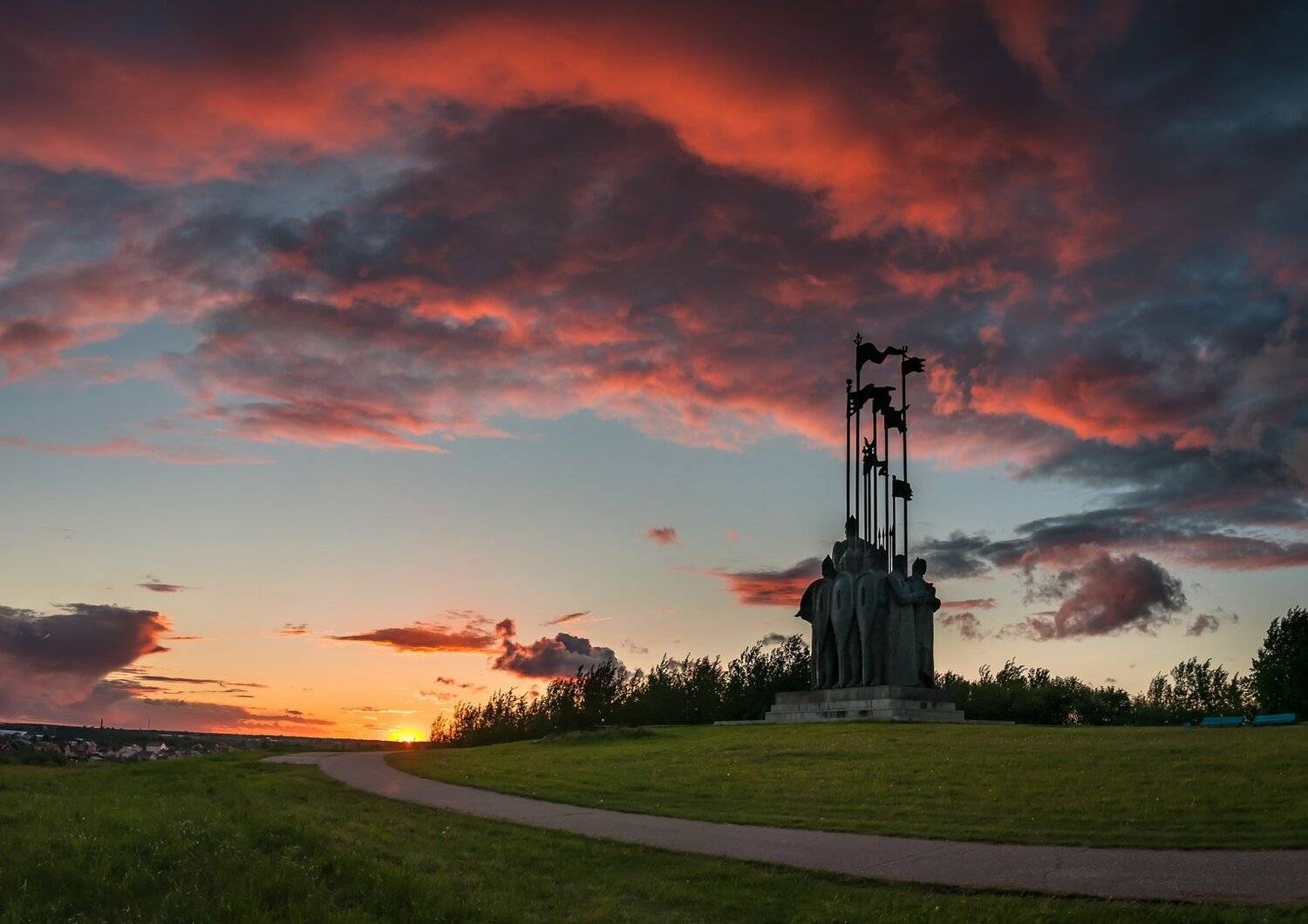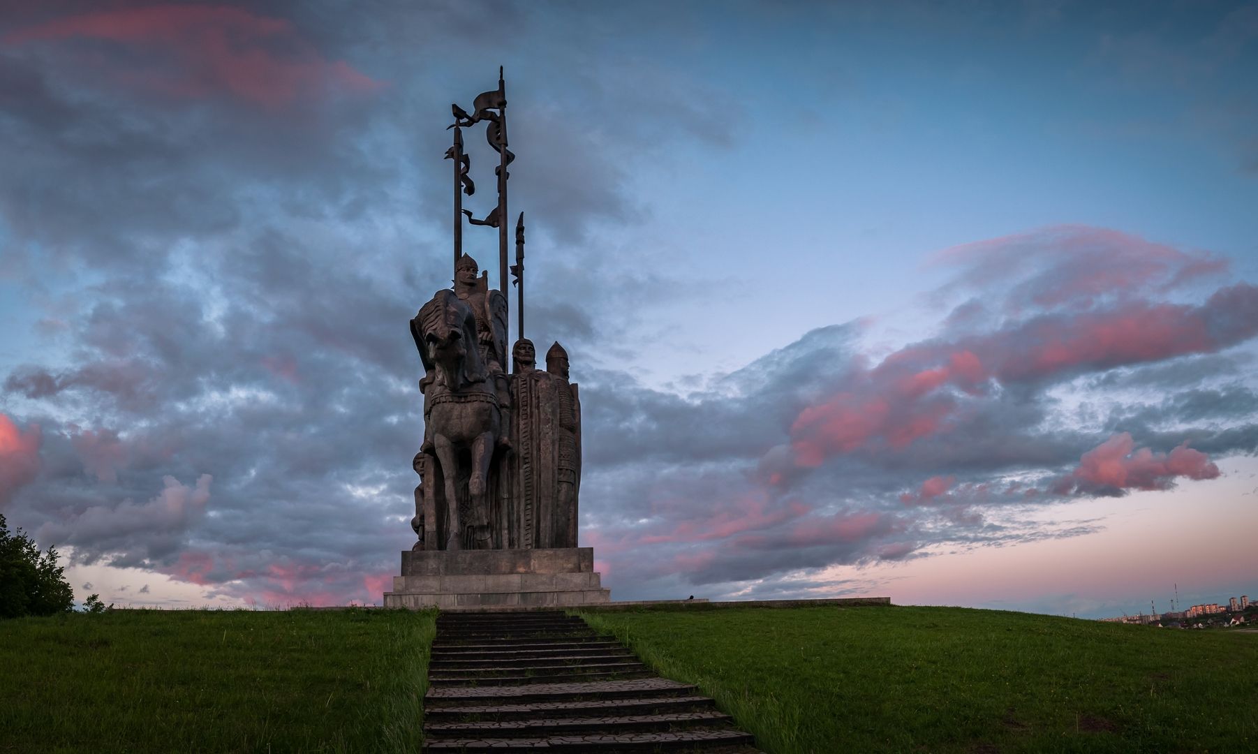 Величественная скульптурная композиция, посвященная почитаемому и на Псковщине, и во всей России великому князю и святому Александру Невскому, а также его дружинникам, в том числе и из Пскова, идущим на Ледовое побоище.