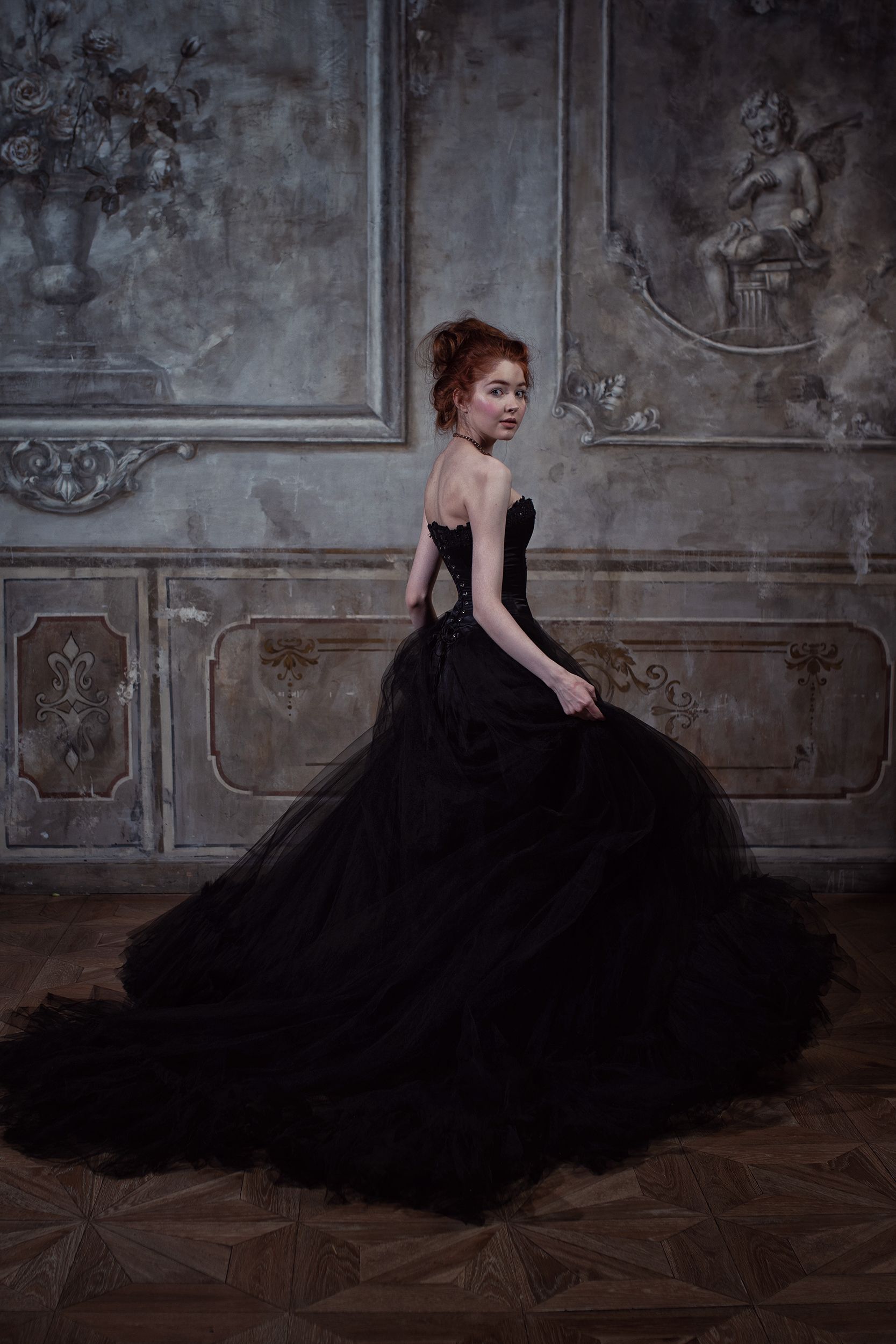 портрет, студия, ренессанс, черный, рыжая, девушка, история, исторический портрет, Янина Ермакова