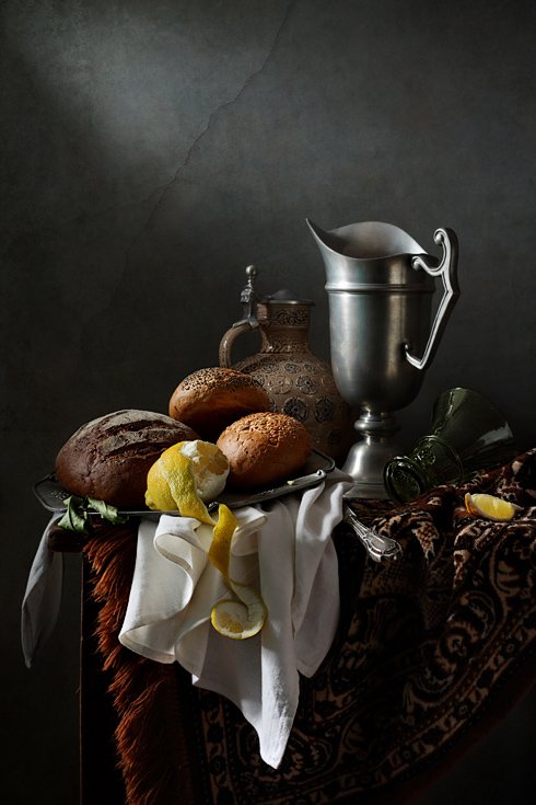 Студия - это для меня абсолютно нереально. Во-первых за нее надо платить, во-вторых - машины у меня нет, и тащить весь натюрмортный скарб куда-то за тридевять земель тяжело и хлопотно. И потом когда снимаешь натюрморт, очень часто конечный результат не слишком похож на начальную задумку, приходится по ходу дела менять часть реквизита один на другой, и что же, все это куда-то в студию тащить...абсолютно невозможно. Так что приходится подлаживаться под домашние условия и к тому же я совершенно не умею снимать с искусственным светом, даже отдаленного представления не имею как это делается :)