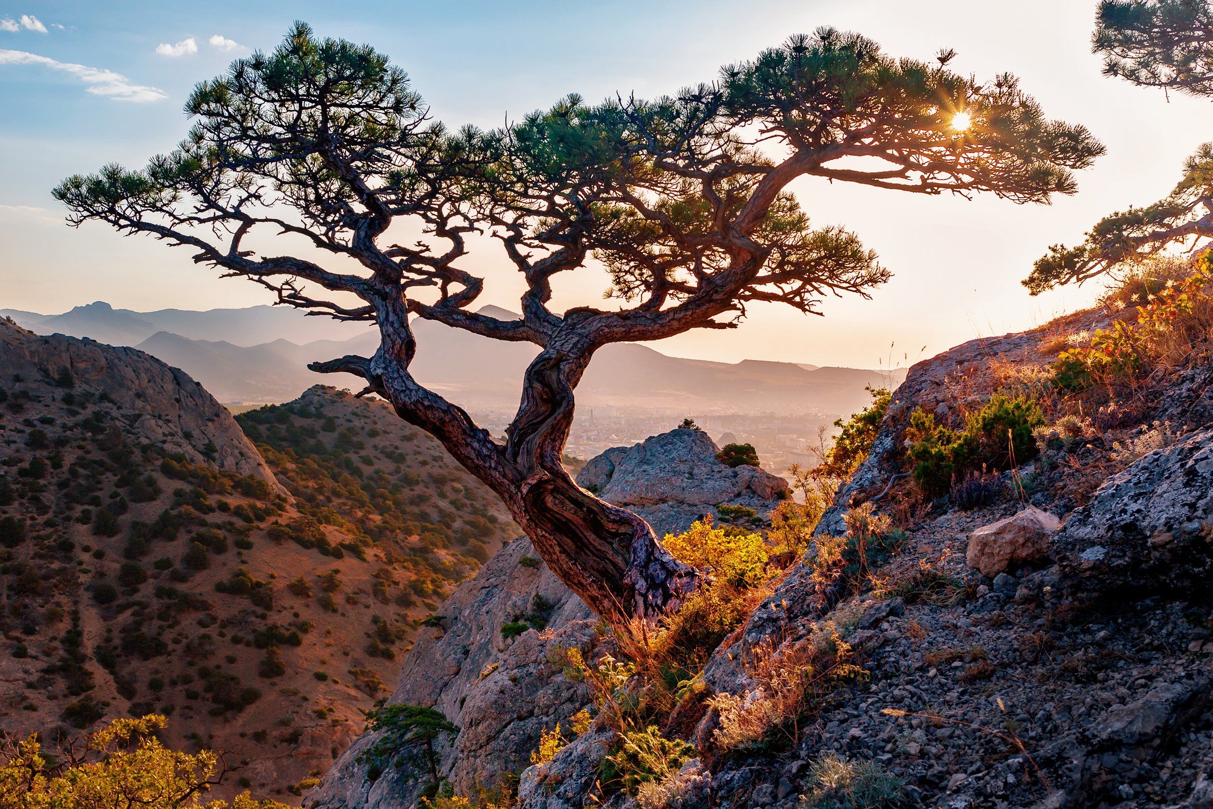 Юго-восточный Крым - это изыск! Видна северная окраина Судака, слева - хребты Таракташ и Токлук-сырт, а сквозь сосну проглядывает Ай-Георгий. (Евгений)