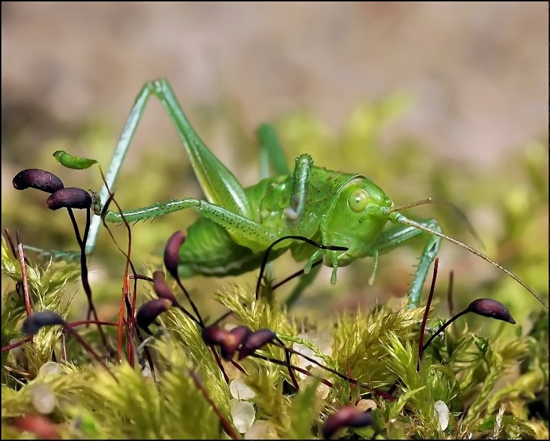 Погряз бедняга в траве-мху как в сетях. И что его на мох привело, вроде не его это место, не травка.