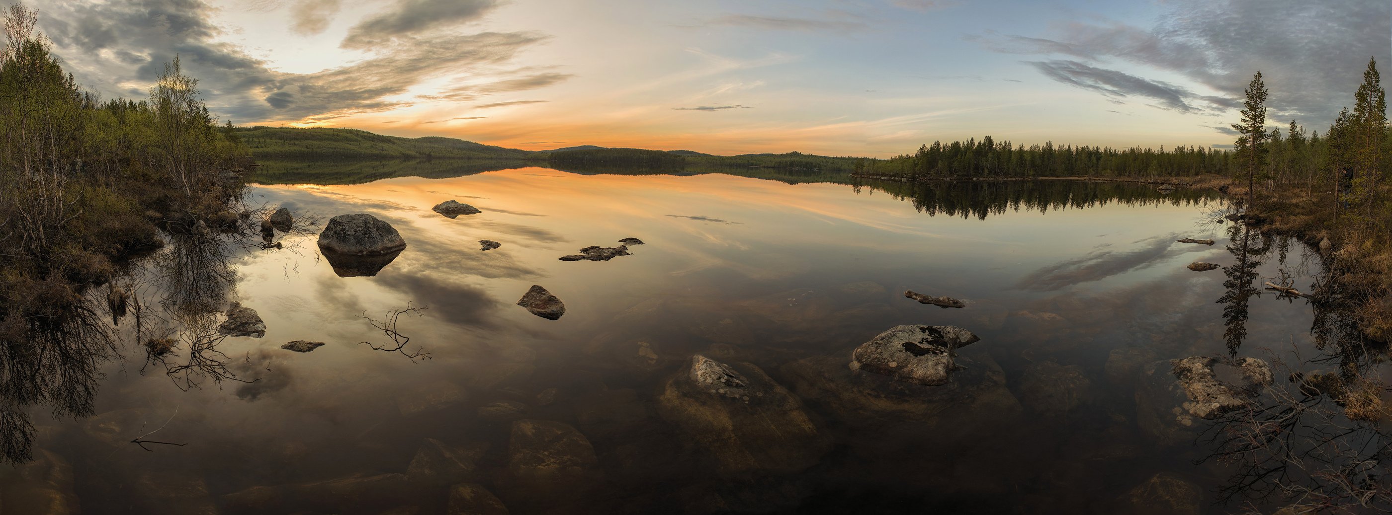 есть такое впечатление , но нет , просто берег не ровный и ближе к правой стороне он выдается вперёд. Горизонт - короткий участок слева , самый дальний берег. По нему и ровнял.)Спасибо!