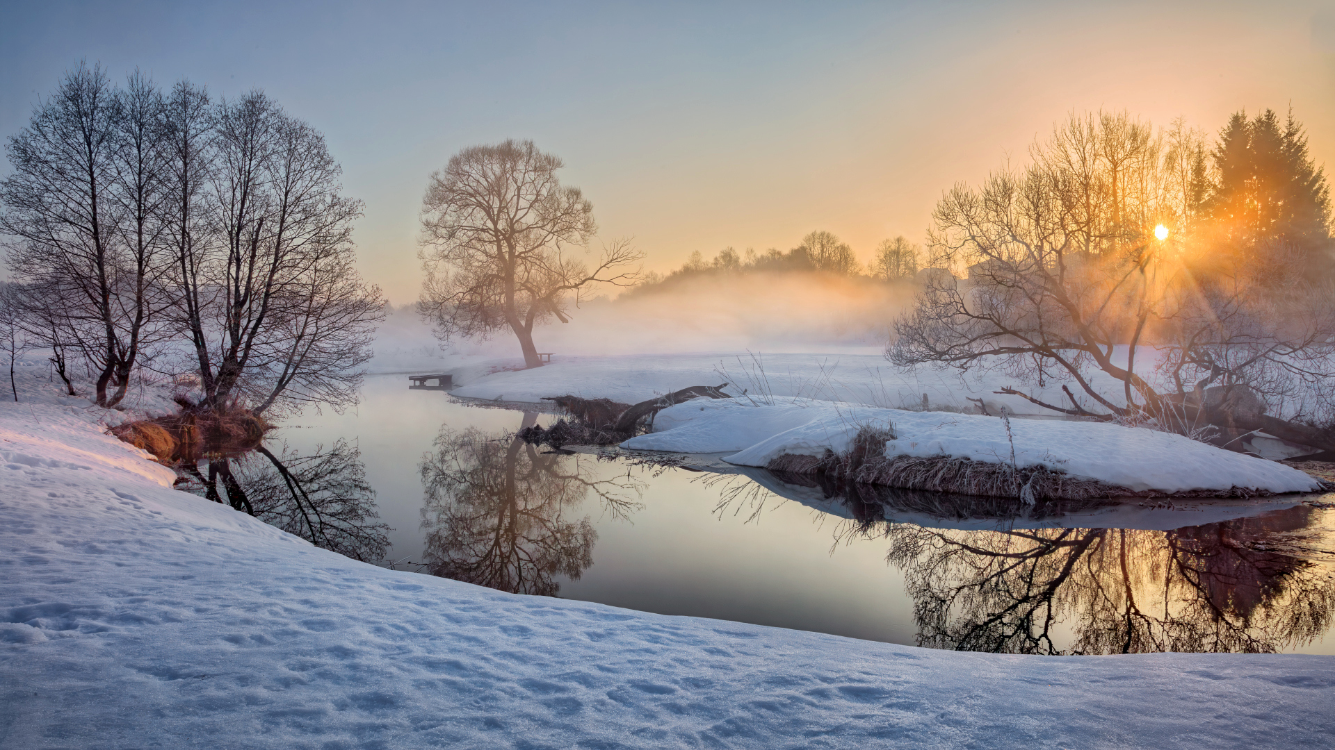Евгений, снимок передаёт утреннюю тишину и чистоту зимы — свет, отражение, контуры деревьев — всё сбалансировано. Видно, что вы снимали в момент, когда солнце только встает, и туман ещё лежит над водой.