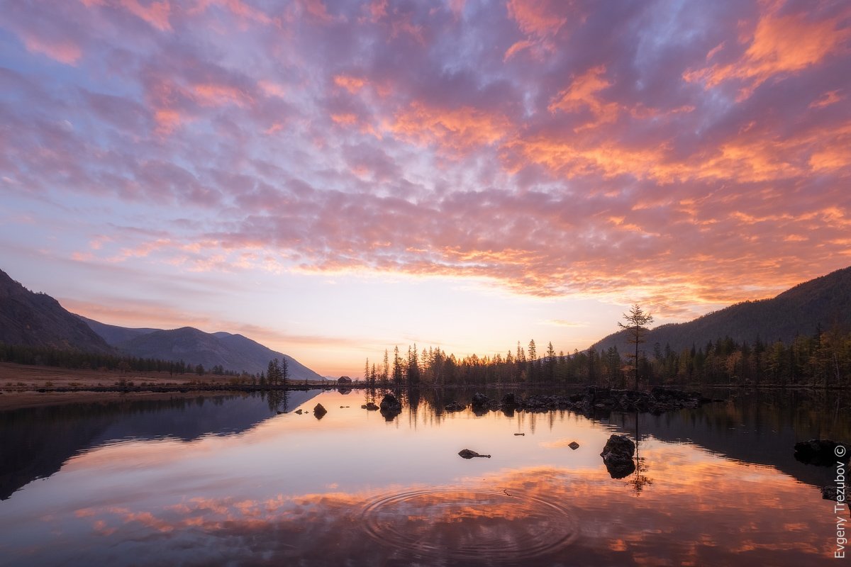 бурятия, рассвет, облака, осень, лес, озеро, лава, Евгений Трезубов