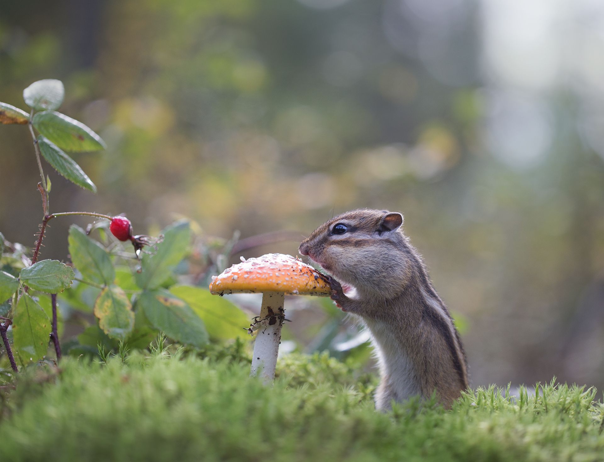 Серия кадров Евгении Левиной погружает в атмосферу якутской тайги, где каждый кадр — это мгновение жизни дикой природы: бурундук, мухомор, нерюнгри. Внимание к деталям, свету и контексту передаёт глубину взаимодействия животных и леса. Кадры — не просто снимки, а рассказ о тонкой гармонии природы.