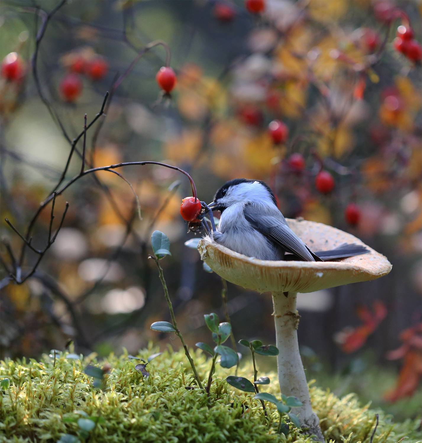 Серия кадров Евгении Левиной фиксирует поведение птиц в дикой природе Якутии. В центре внимания — гаичка, прячущаяся среди шиповника в нерюнгри. Каждый кадр — точный срез природной жизни, передающий атмосферу тайги. Автор снимает с уважением к экосистеме, подчёркивая хрупкость и красоту дикой природы.