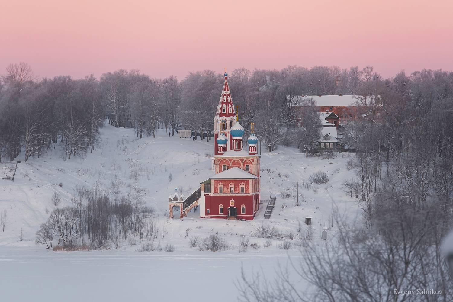 На фотографиях представлен Романовский берег города Тутаева со своими крутыми холмами и живописной архитектурой, уводящей зрителя вдаль ушедших веков.