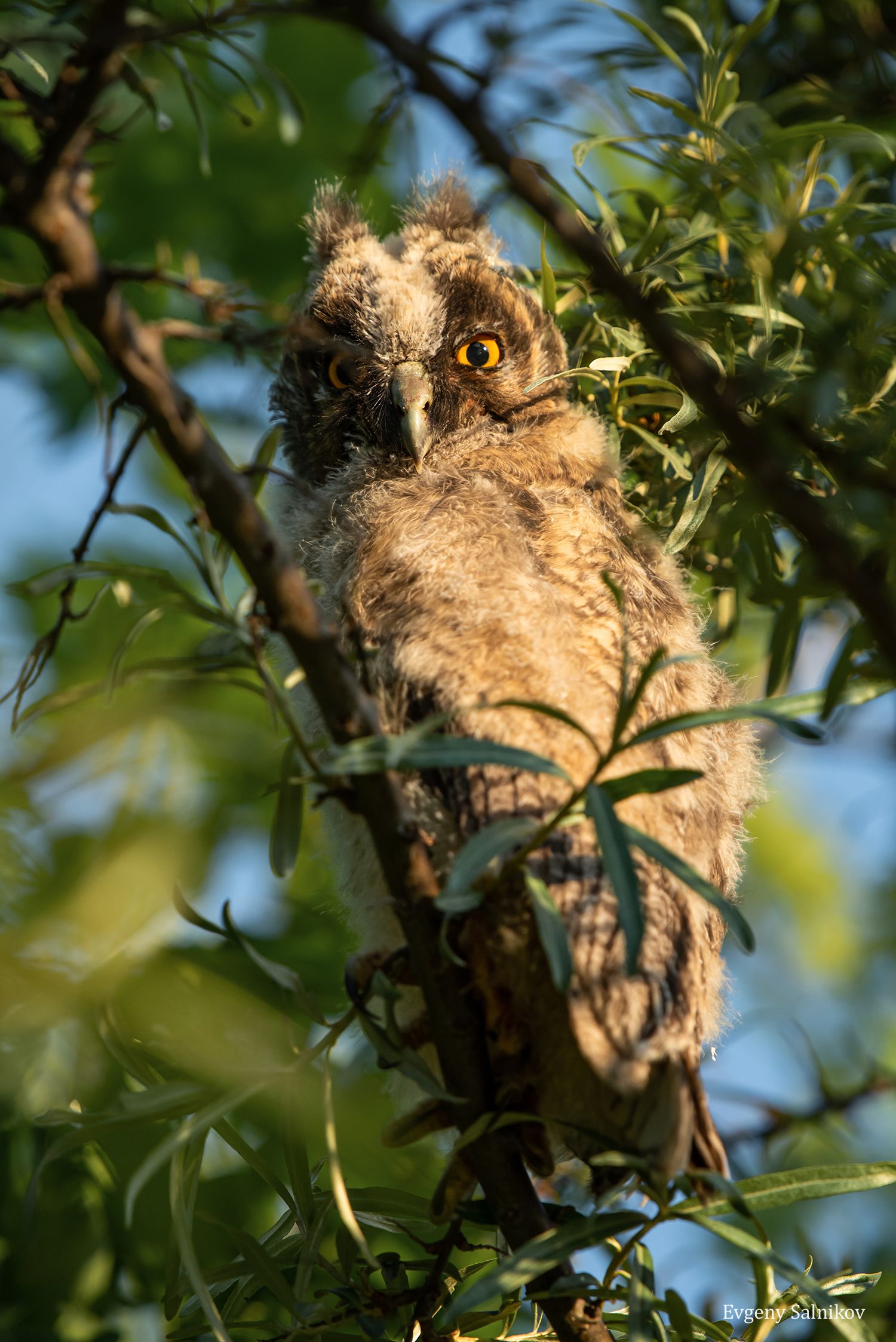 Семья сов поселилась близ деревни. На одном из деревьев был замечен совёнок. У них такая харизма и взгляд, что хочется смотреть и смотреть. Но чтобы не пугать птиц, кадры делал быстро.