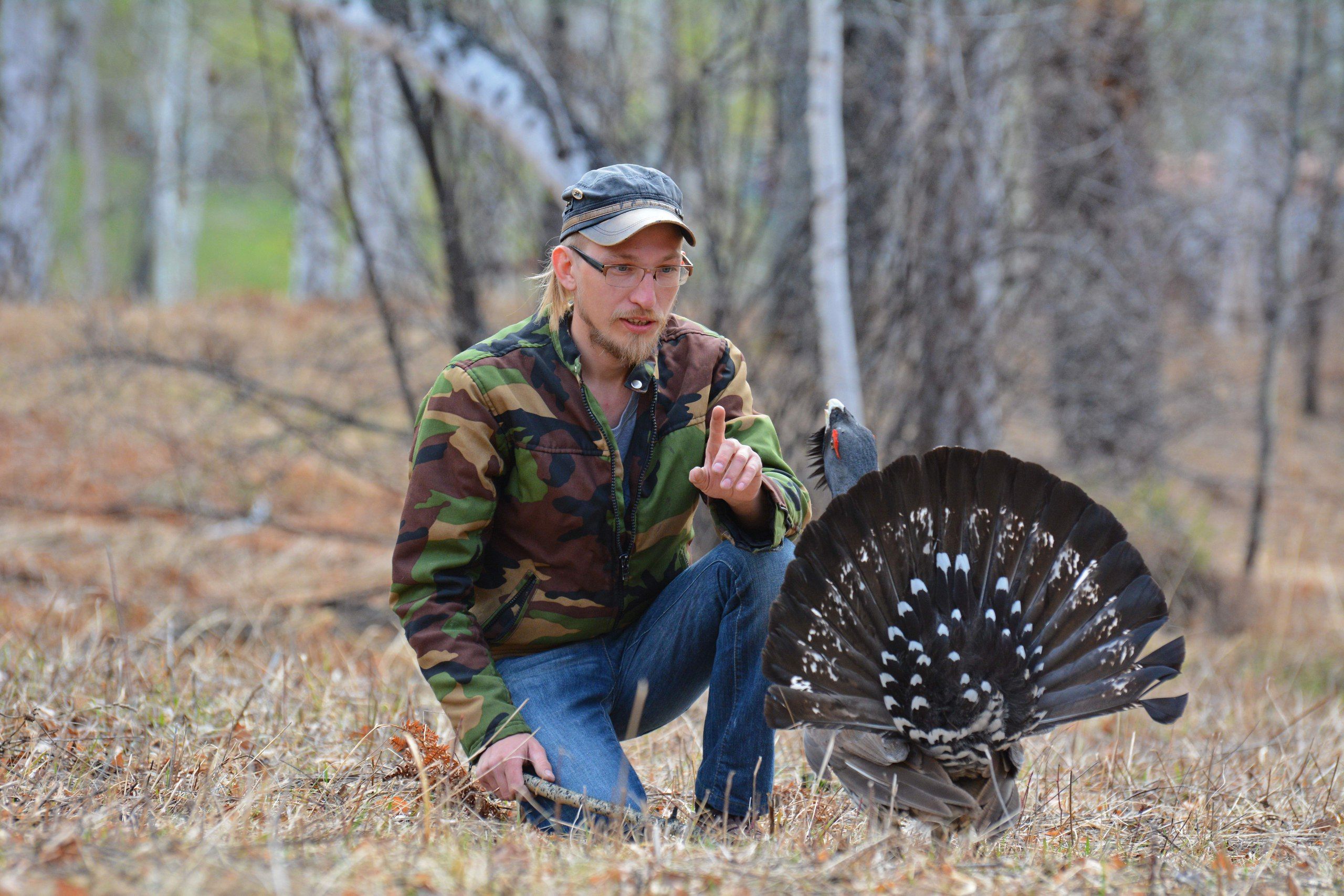 Наконец-то удалось побывать на необычном глухарином току, где на поле боя всего один токующий глухарь. Вся необычность этого глухаря заключается в том, что он абсолютно не боится человека и даже пытается завязать с ним драку, в которой человек обычно проигрывает.