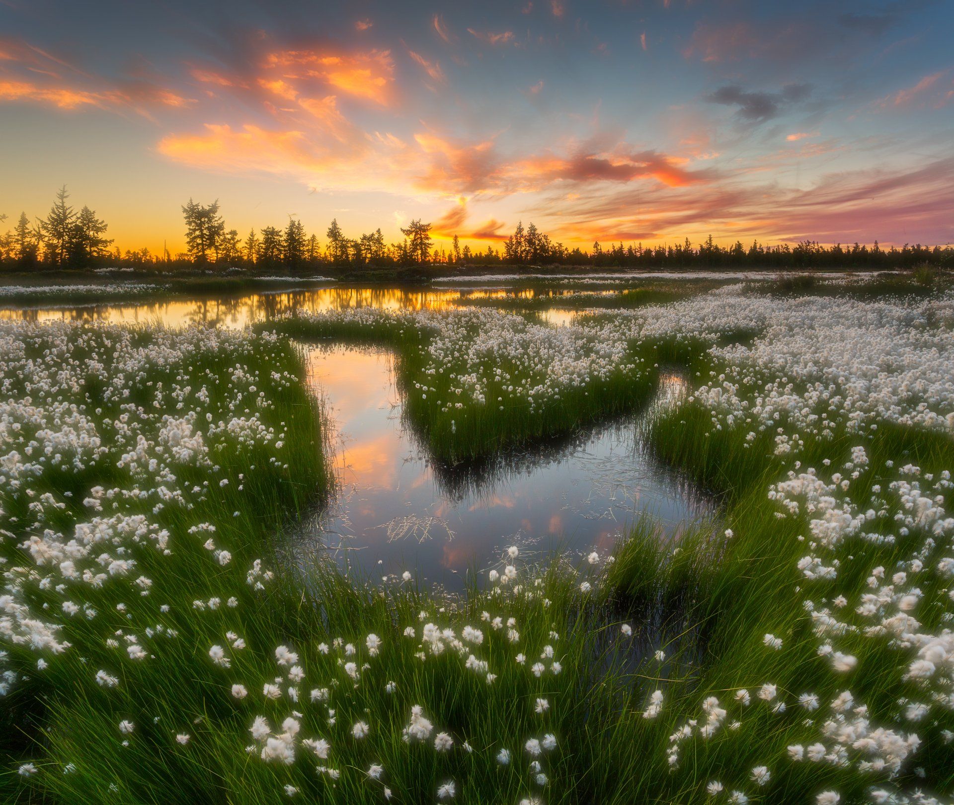Закат, Лето, Новый уренгой, Пушица, Ямал, Pavel  Evgrafov