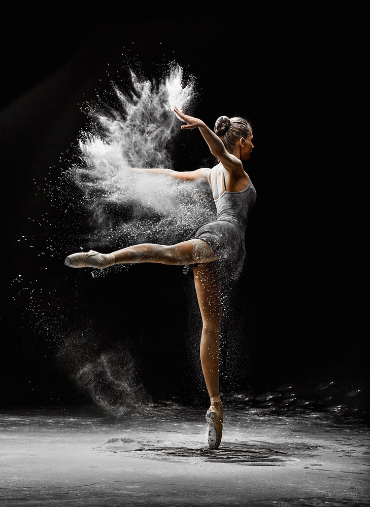 В темноте сцены — фигура балерины, зависшая в воздухе, как будто время остановилось. Её пальцы касаются всплеска белой пыли, разлетающейся в стороны, словно следы мгновенного вдохновения. Каждая частица — отражение силы, утончённости и внутреннего напряжения. Фотограф Семен Евлантьев захватил не просто позу, а душу танца — момент, когда тело становится поэзией, а пространство — холстом для эмоций. Это не просто снимок — это метафора творческого акта, где красота рождается в разрушении и движении.