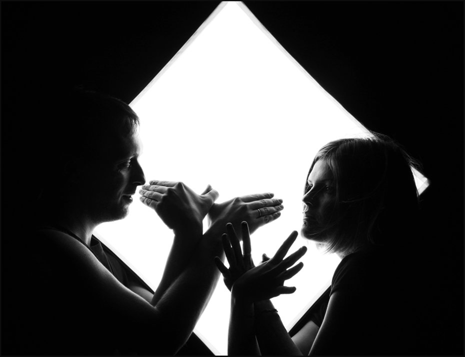 На самом деле никакой постановки практически не было. Мы что-то снимали, а потом, на перерыве, просто игрались со светом, состовляли какие-то фигурка руками и т.д. в этот момент я и сделал этот кадр)))))