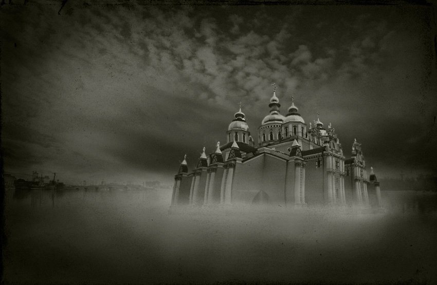 михайловская церковь, набережная, киев, коллаж, приведение, Garin Alexey