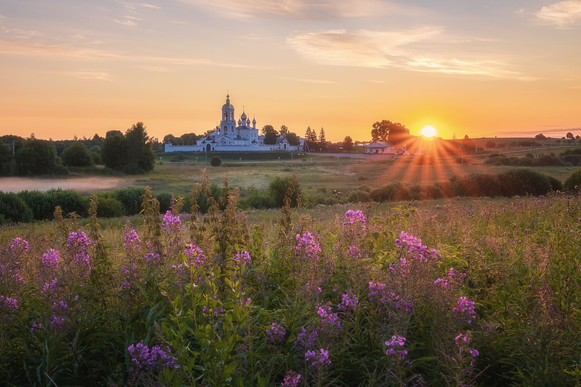 монастырь храм пейзаж рассвет иван-чай утро церковь солнце, Anya Yukhova