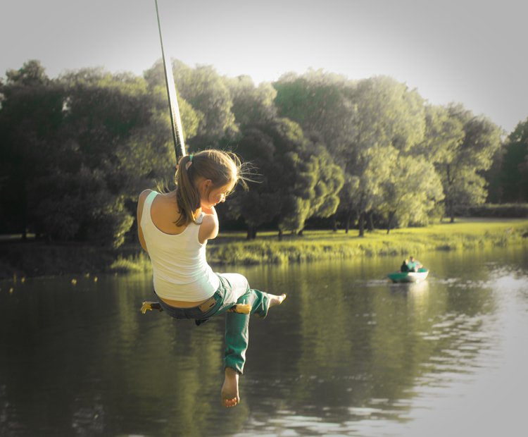 девушка, озеро, лодка, тарзанка, fatebeyond
