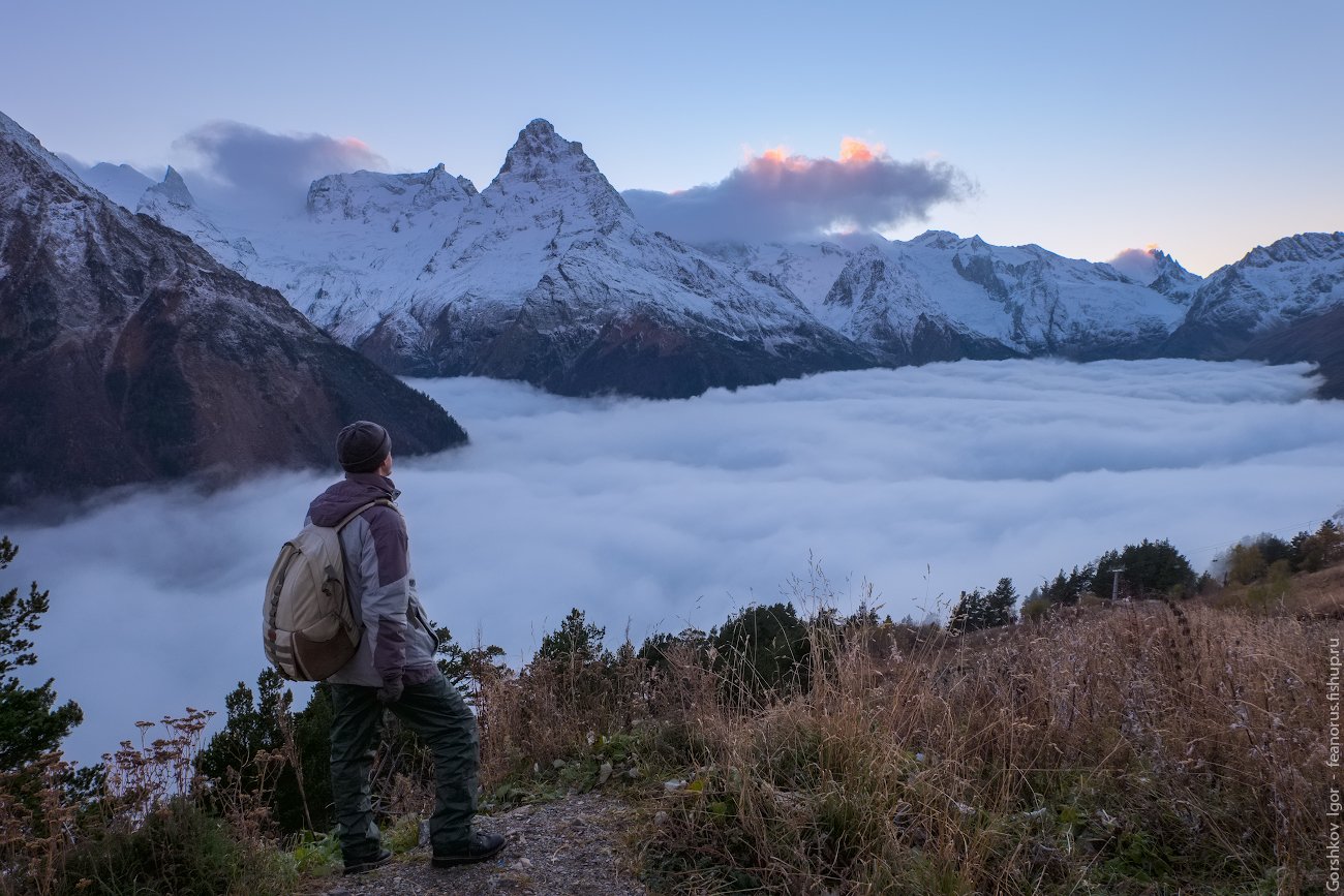 Автопортрет на фоне кавказских гор Домбая по мотивам одноимённой картины немецкого художника-романтика Каспара Давида Фридриха (1818) :)