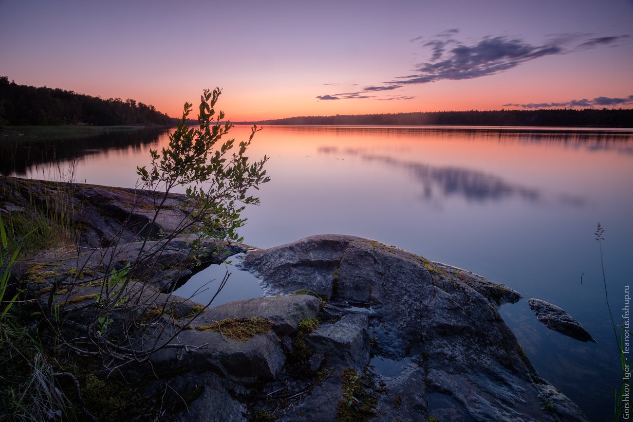 закат,лето,берег,ладога,озеро,россия,пейзаж,север,длинная выдержка,вода,отражения,камни, Горшков Игорь