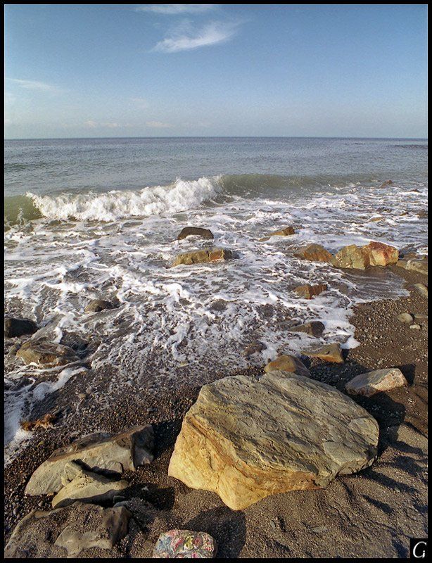 Самое весёлое купание было в этот день, правда пришлось идти на другое место (обычно мы пляжевали здесь), где нет камней - только мелкая галька.