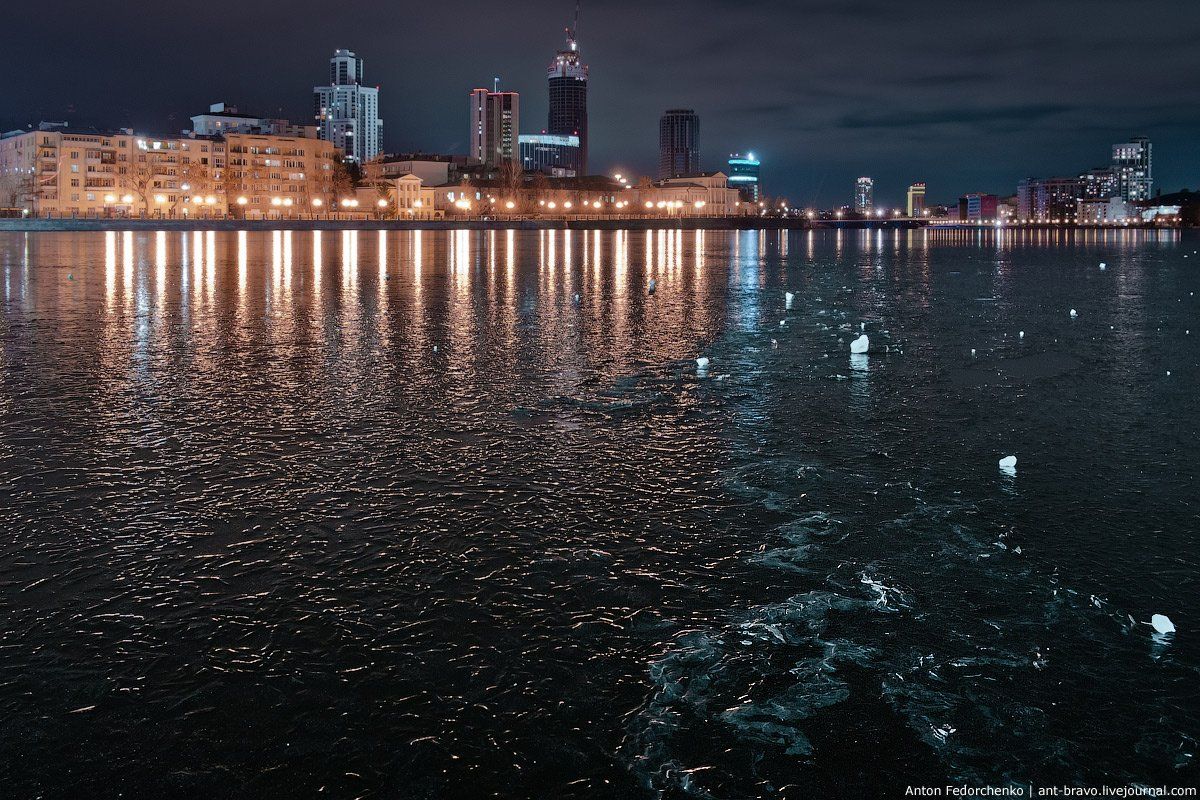 Город, Екатеринбург, Лед, Ночь, Сити, Anton Fedorchenko