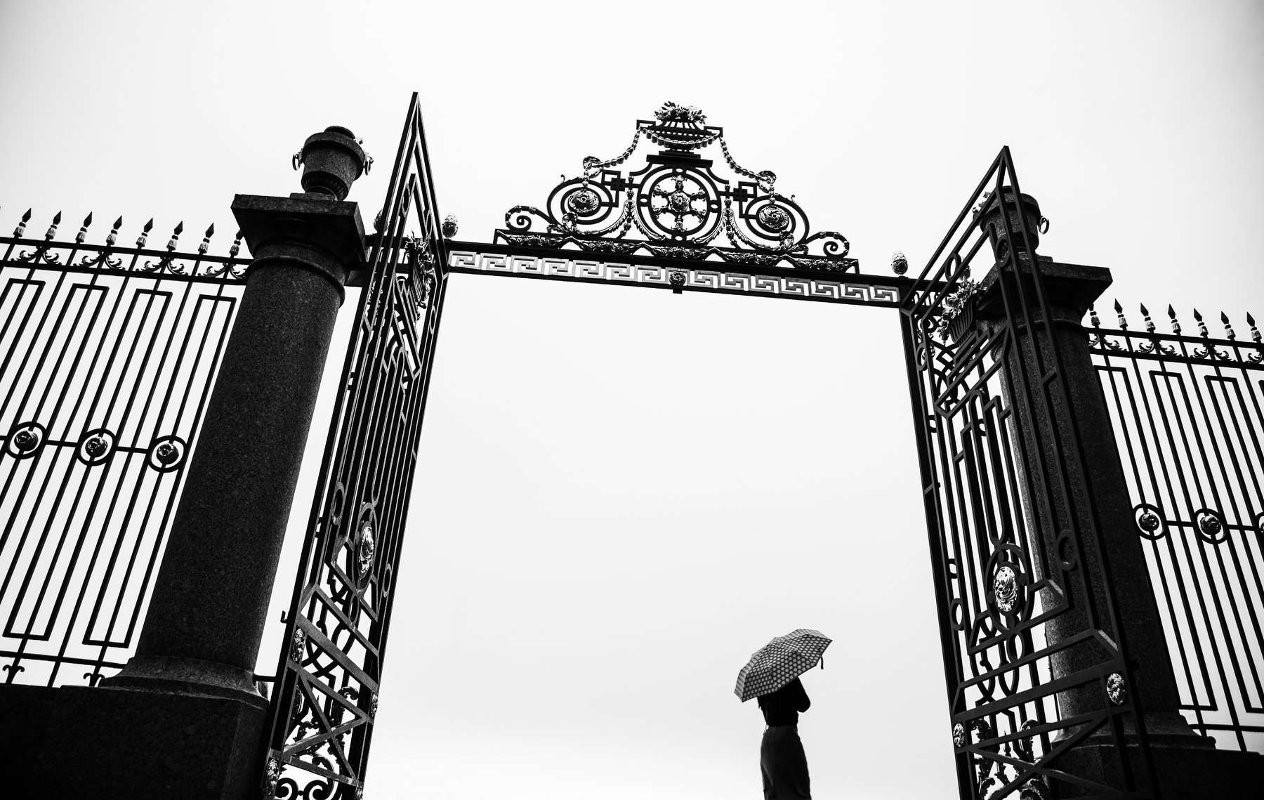 фото, ч/б, город, невская ограда, санкт петербург, ворота, девушка, зонт, Федотов Вадим(Vadius)
