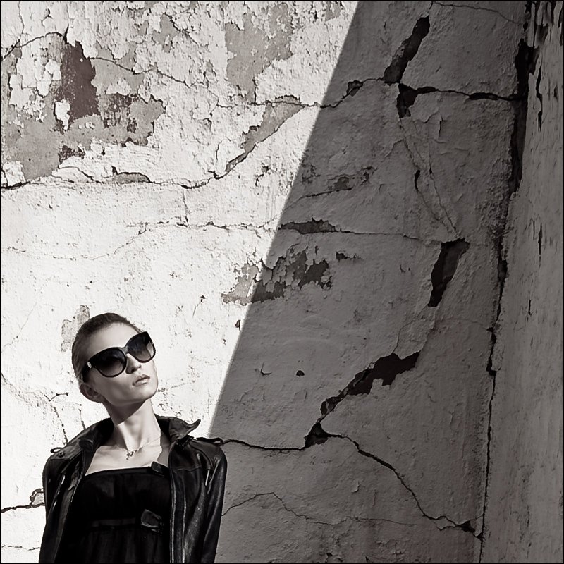 Расположение очень вдумчивое в сочетании с тенями и трещинами. Ну, и поворот головы великолепен. Уверен, что без этих очков она прекраснее. макияж бы правильный. С её губами пошёл бы "смоук" или "сумерки".