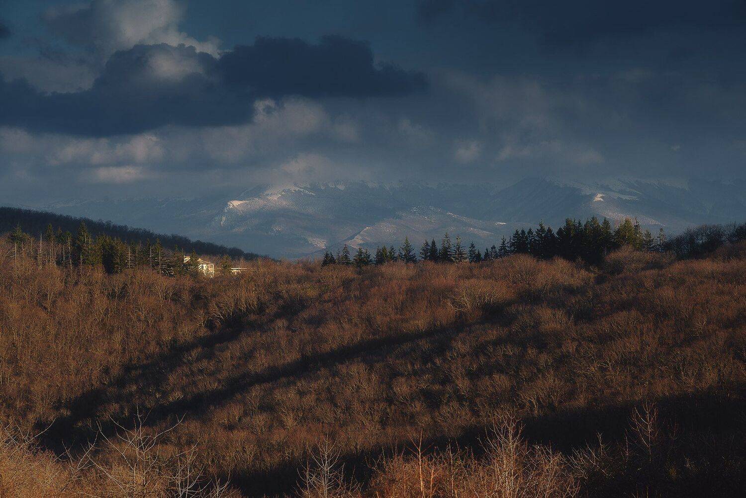 Посёлок Научный, вид на главную гряду Крымских гор.