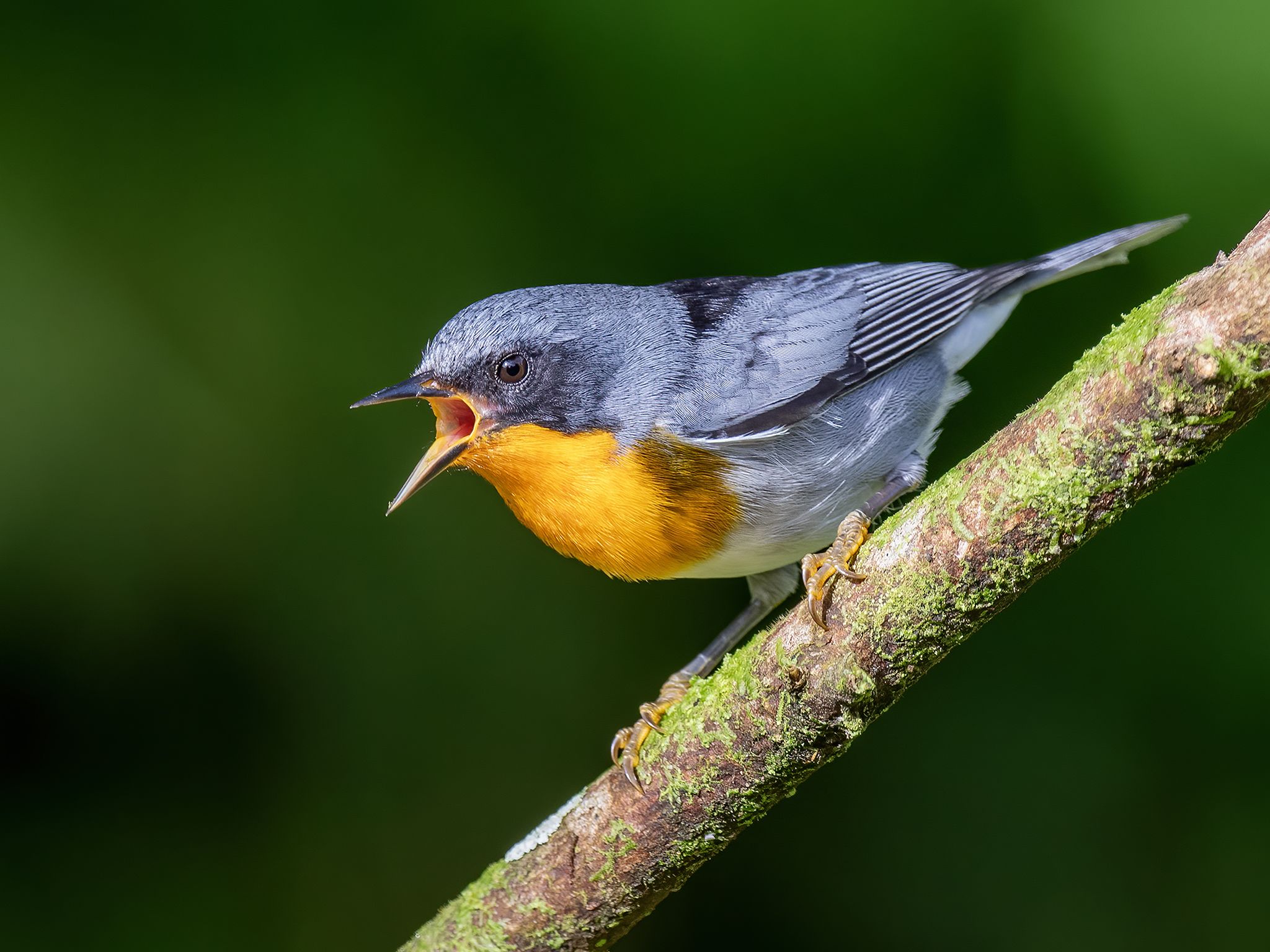 Chipe hermoso con la garganta anaranjada brillante, el resto del cuerpo es gris con la espalda negra. Ambos sexos iguales, los juveniles son más opacos. Pequeños y activos, encontrados en bosques montanos y bordes. A menudo en pares, frecuentemente siguiendo una bandada de forrajeo de especies mixtas. El canto es un zumbido extraño.