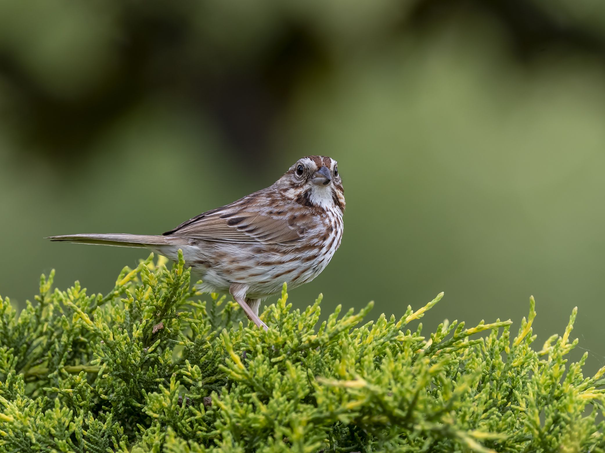 Uno de los gorriones más comunes y ampliamente distribuido. Se encuentra en una variedad de hábitats de matorrales tanto cerca como lejos de asentamientos humanos. Con mucha variación en el plumaje a través de su distribución. Busca las estrías gruesas y marrones en el pecho blancuzco. Más grande, de cola más larga y más rojizo que Savannah Sparrow. Frecuentemente visita los comederos.