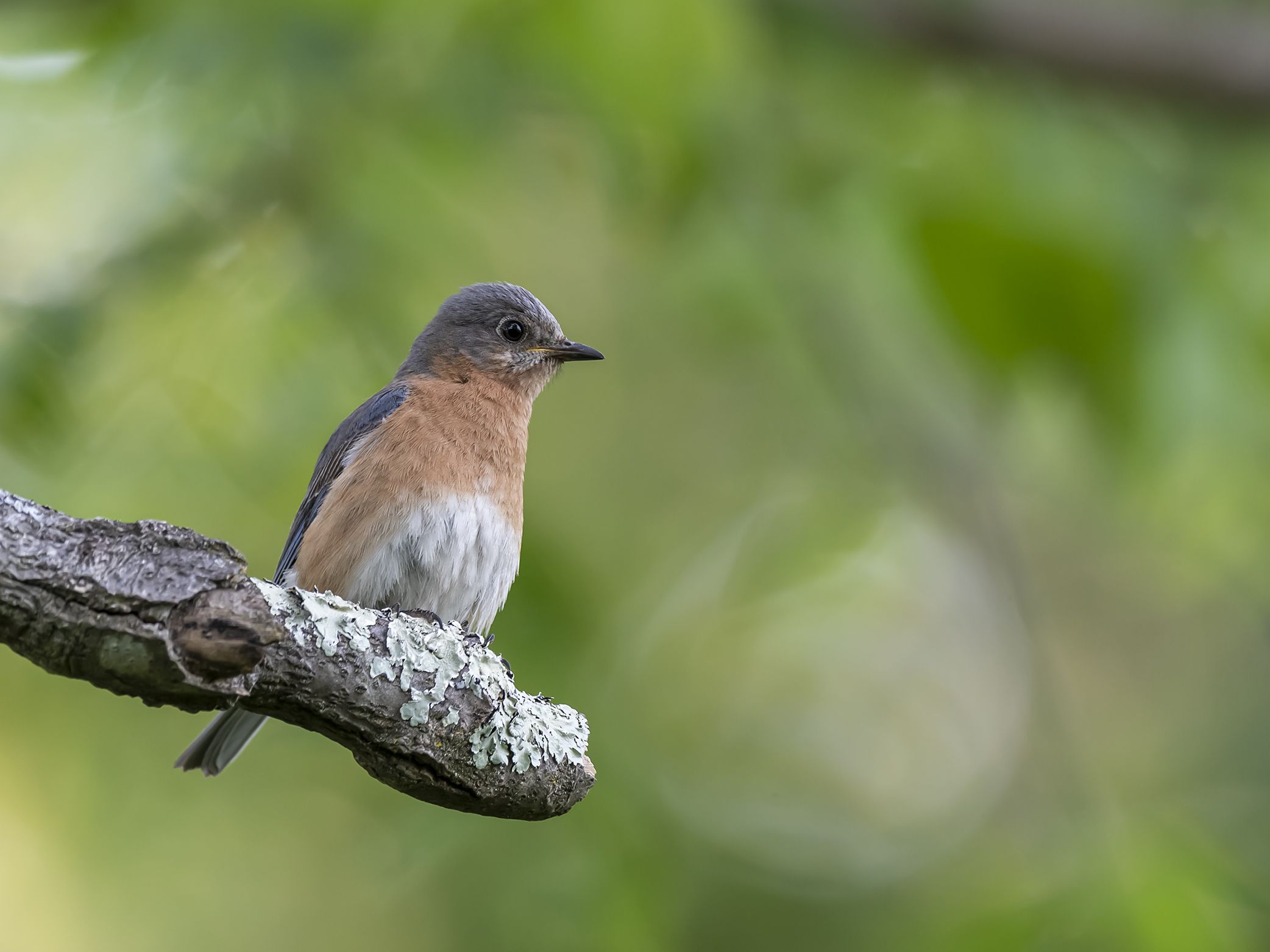 Los machos adultos son muy notables, azul real arriba con garganta y pecho anaranjados brillantes y vientre blanco. Las hembras en general son más pálidas; grisáceo anaranjado en el pecho y los lados del cuello, y vientre blanco. Prefiere pastizales y bosques abiertos. Con frecuencia en grupos pequeños. Frecuentemente se percha en alambres o postes de cercas. Anida en cavidades. Escucha por sus vocalizaciones suaves y alegres.