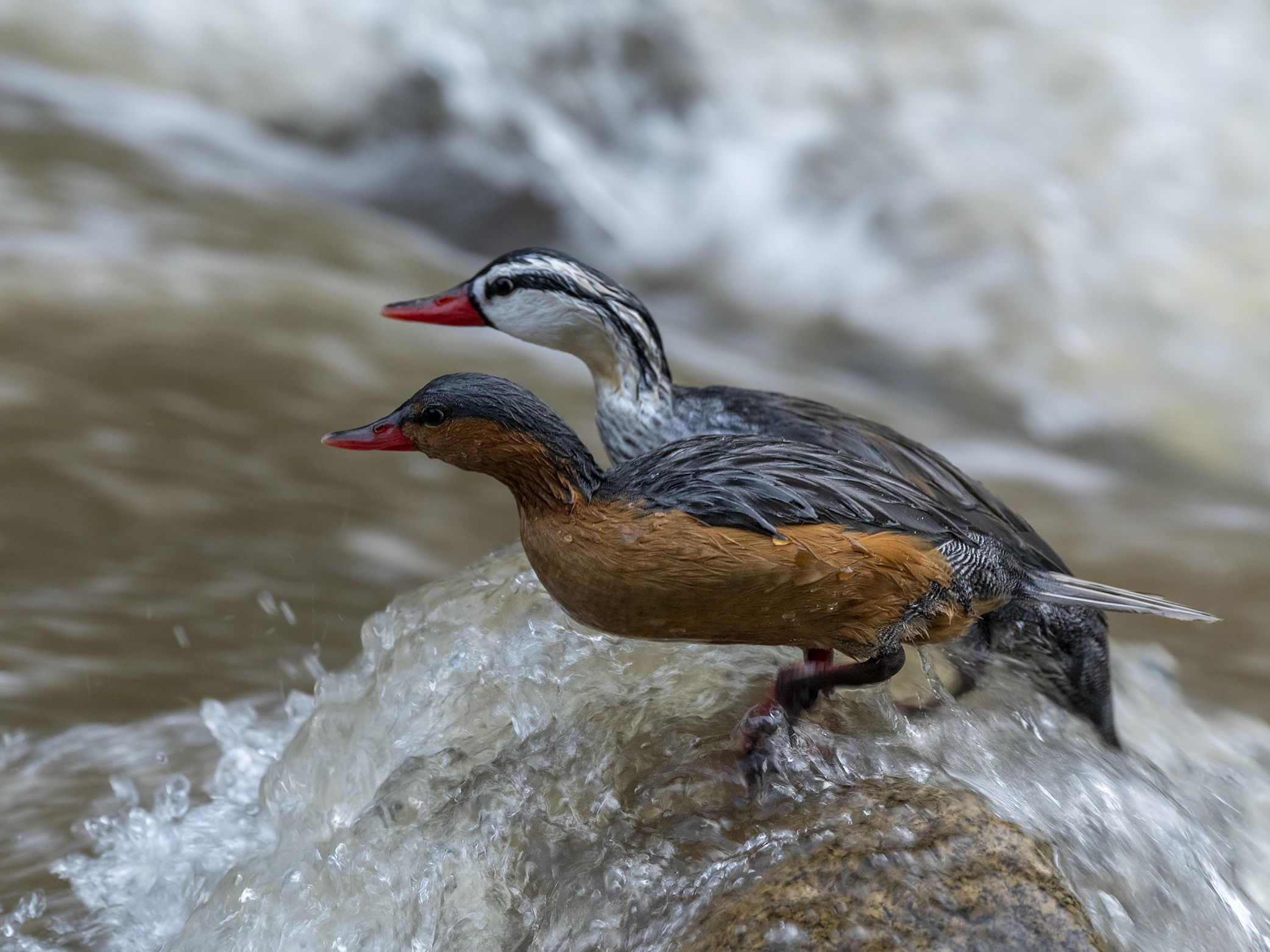 Torrent Duck (Merganetta armata) Pato de los torrentes, pato torrentero o pato cortacorrientes