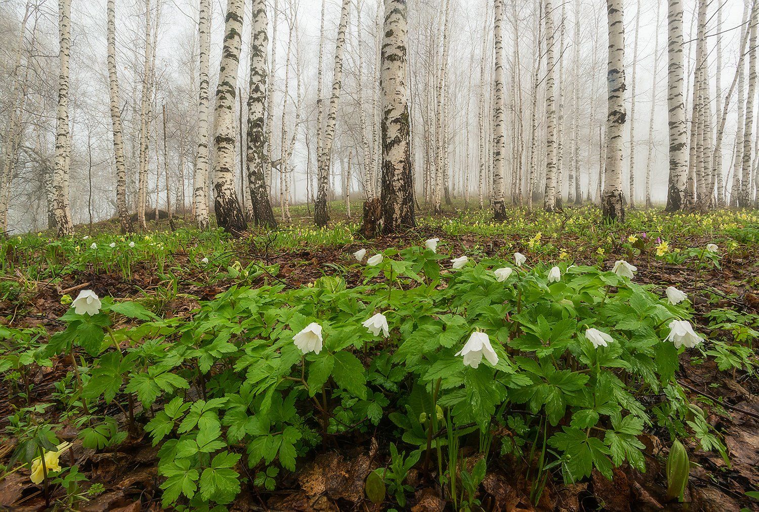 Altai, Altai krai, Siberia, Алтай, Березы, Весна, Ветреница алтайская, Сибирь, Туман, Павел Филатов