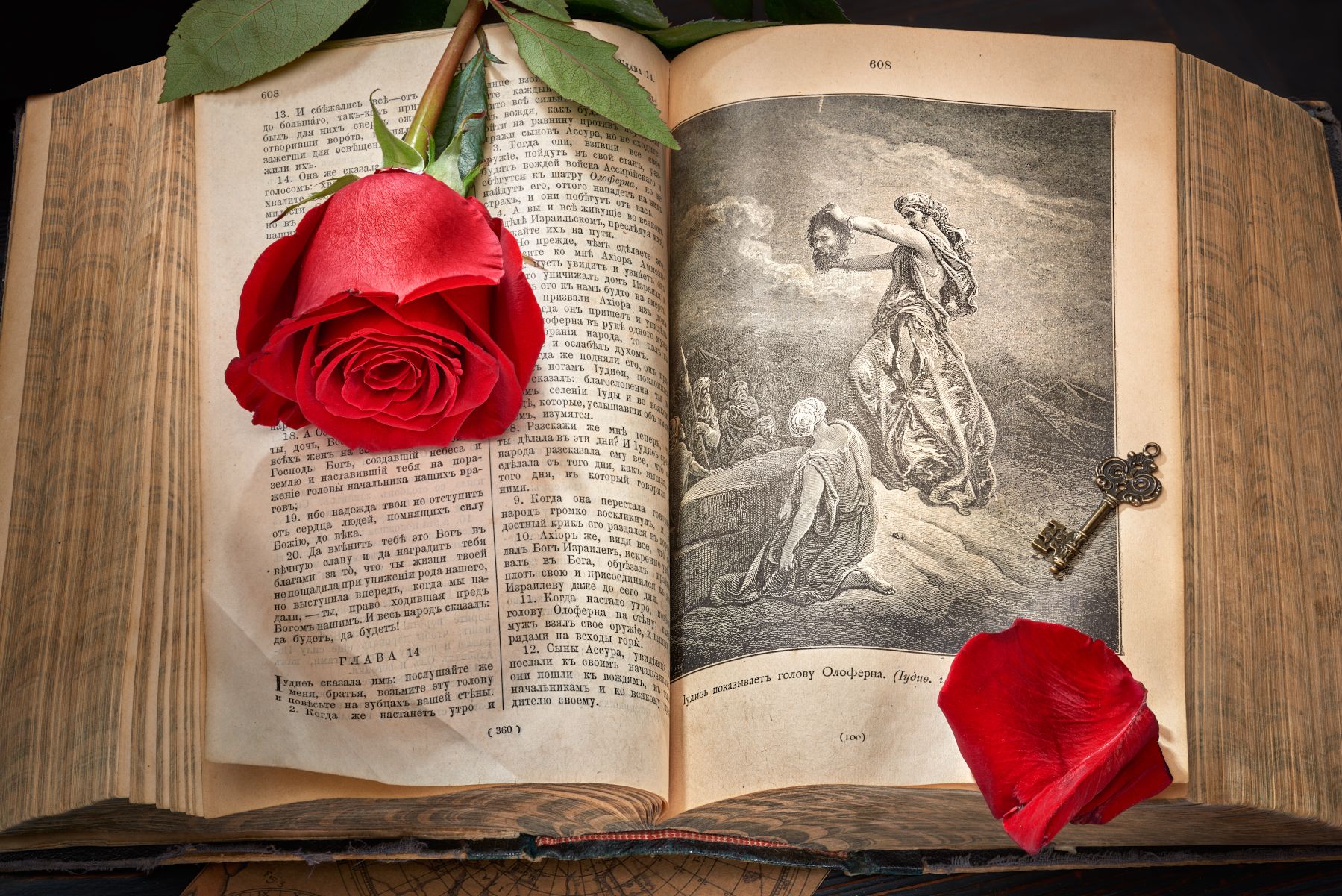 под вымышленной легендой осуществила разедпроникновение в стан врага, вошла в доверие к ключевому представителю "политикоформирующих кругов" — полководцу Олоферну, соблазнила его, бесшумно ликвидировала, вернулась в Центр с овеществлённым доказательством выполненного задания — отсечённой головой целевого объекта).