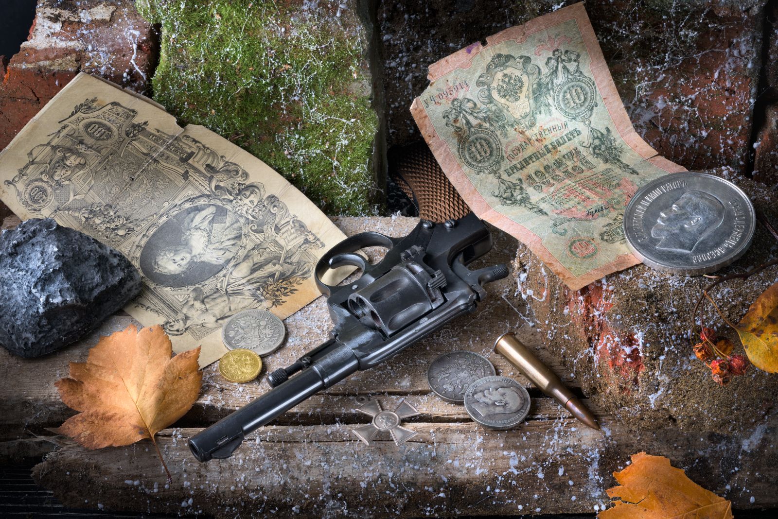 В 1972 году в городе Перми при демонтажных работах на чердаке старого дома по улице Большевистской был обнаружен нетронутый ни временем, ни случайным людом тайник. Содержал он, помимо дореволюционных золотых и серебряных монет, медалей, а также бумажных ассигнаций, довольно внушительную подборку огнестрельного оружия, в числе которого отметились не только заурядные наганы, но и 4,2 линейный револьвер Смита-Вессона, пистолет 45-го калибра фирмы Кольт М1911 (разработан Браунингом в 1908 году), несколько винтовок Винчестер 1873 года со скобой Генри (т.н. "рычажка"), британская Ли-Энфилд 1895 года, немецкий Gewehr 1988-05. Венчал этот арсенальчик набор из ручных гранат и разнокалиберных боеприпасов от разных производителей из разных стран и некие склянки с разложившимися химикатами.