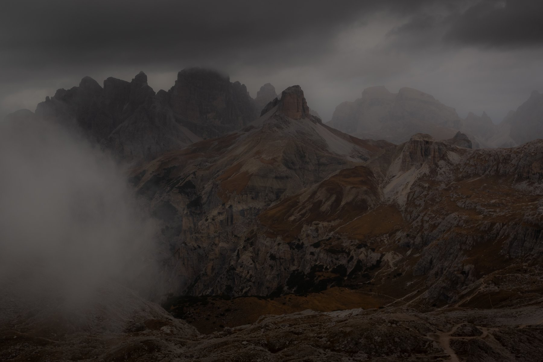 Первые капли дождя застучали по капюшону моего дождевика, намекая на то, что съёмку пора заканчивать. Ещё несколько мгновений и тёмная серая мгла поглотит всё вокруг. Видимость была настолько малой, что я видел камни, не далее десятка шагов от себя. Ветер как-то резко стих и ближайшие четыре часа дождь монотонно поливал всё вокруг.