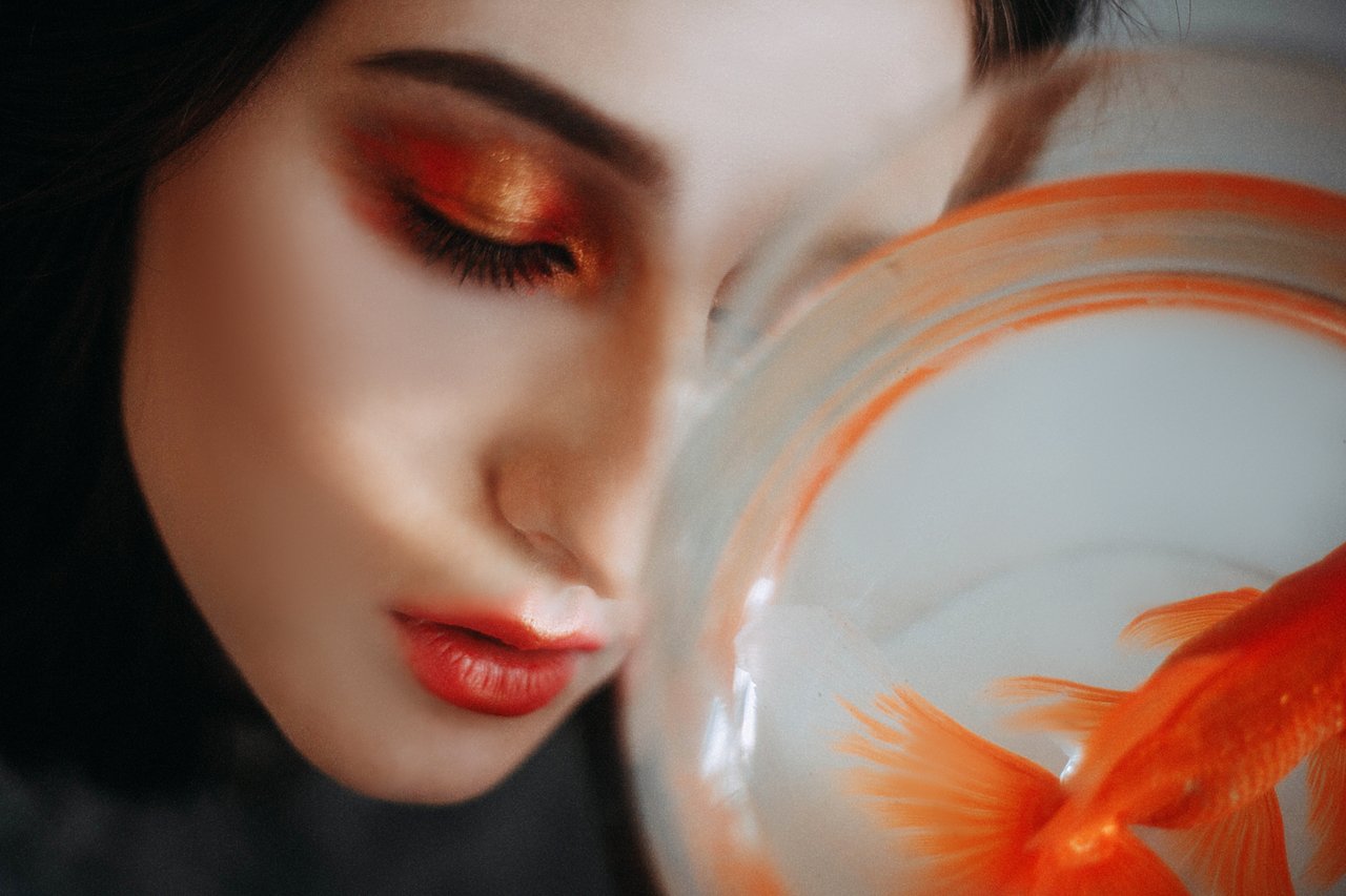 портрет мультиэкспозиция рыба девушка глаза, Marie Dashkova