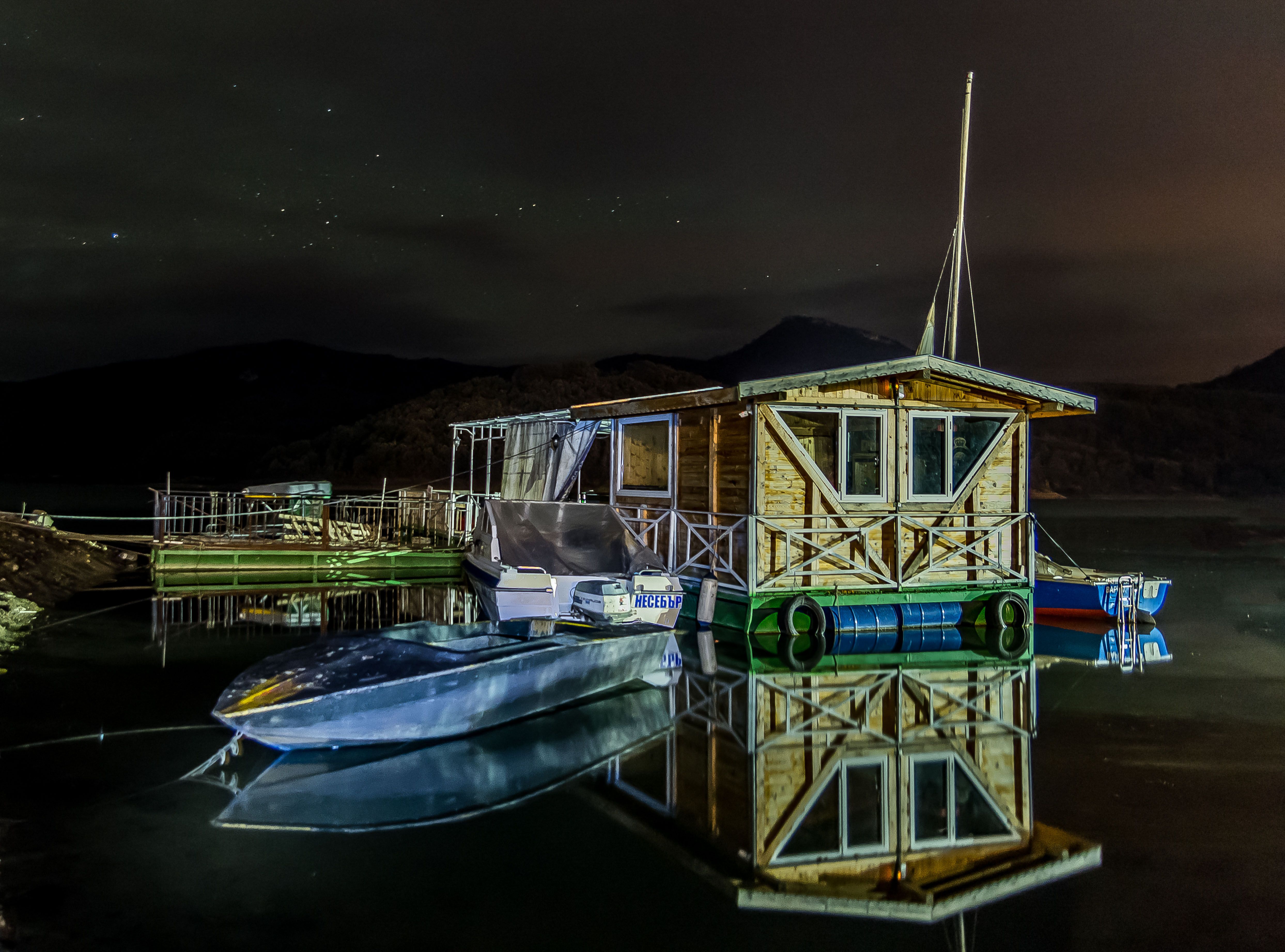 #port#night#mirrors#boat#lake#star#landscape#nature#adventure, Nikolay Nikolov