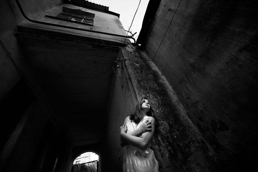 девушка, двор, черно-белое, ставрополь, город, портрет, Andrey Fomenko